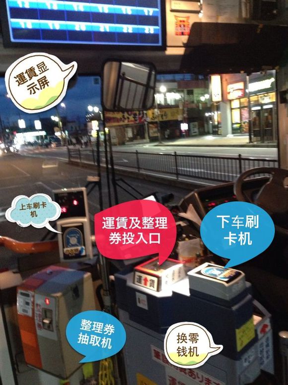 日本的公交也分固定收費(fèi)和按路程收費(fèi)。乘坐固定收費(fèi)的公交車上車時(shí)就要刷卡或者投幣。按路程收費(fèi)的公交車需要在上車時(shí)先拿一張整理劵(不拿的話就要收全程費(fèi)用),在下車后根據(jù)收費(fèi)表刷卡或投幣。車上很貼心的可以兌換零錢喔。