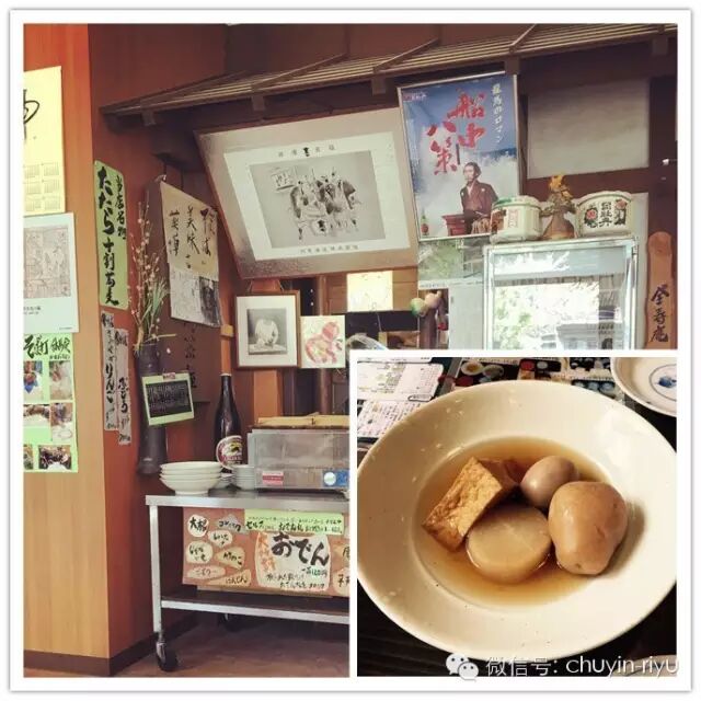 店內(nèi)有一個自取おでん(關(guān)東煮)的地方,一個100日幣,取幾個拿幾個小牌子放在自己桌上就可以了。厚豆腐,土豆,白蘿卜,每樣都是看起來普普通通,吃起來好吃的停不下來!