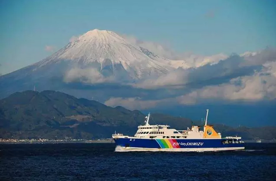 連接著靜岡市清水港和伊豆市土肥港的駿河灣渡輪。你也可以考慮搭乘這艘1小時(shí)左右的渡輪,以不同的角度觀賞富士山。