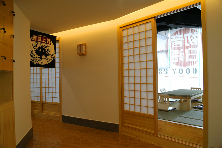 四個教室在布置上都采用了榻榻米,矮桌、拉門等接近日式布局的和室充滿著濃濃的日風(fēng),這樣子的配備是不是讓你學(xué)習(xí)日語更加興趣盎然了呢!還有豐富的美食,茶道,和服,禮儀,文化課,在學(xué)習(xí)日語的同時感受日本,加深體驗。不用擔(dān)心要一直正坐喔,因為下面我們貼心的設(shè)計了可以放腳的地方,用座椅取代坐墊,這樣就不會累啦!
